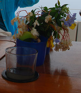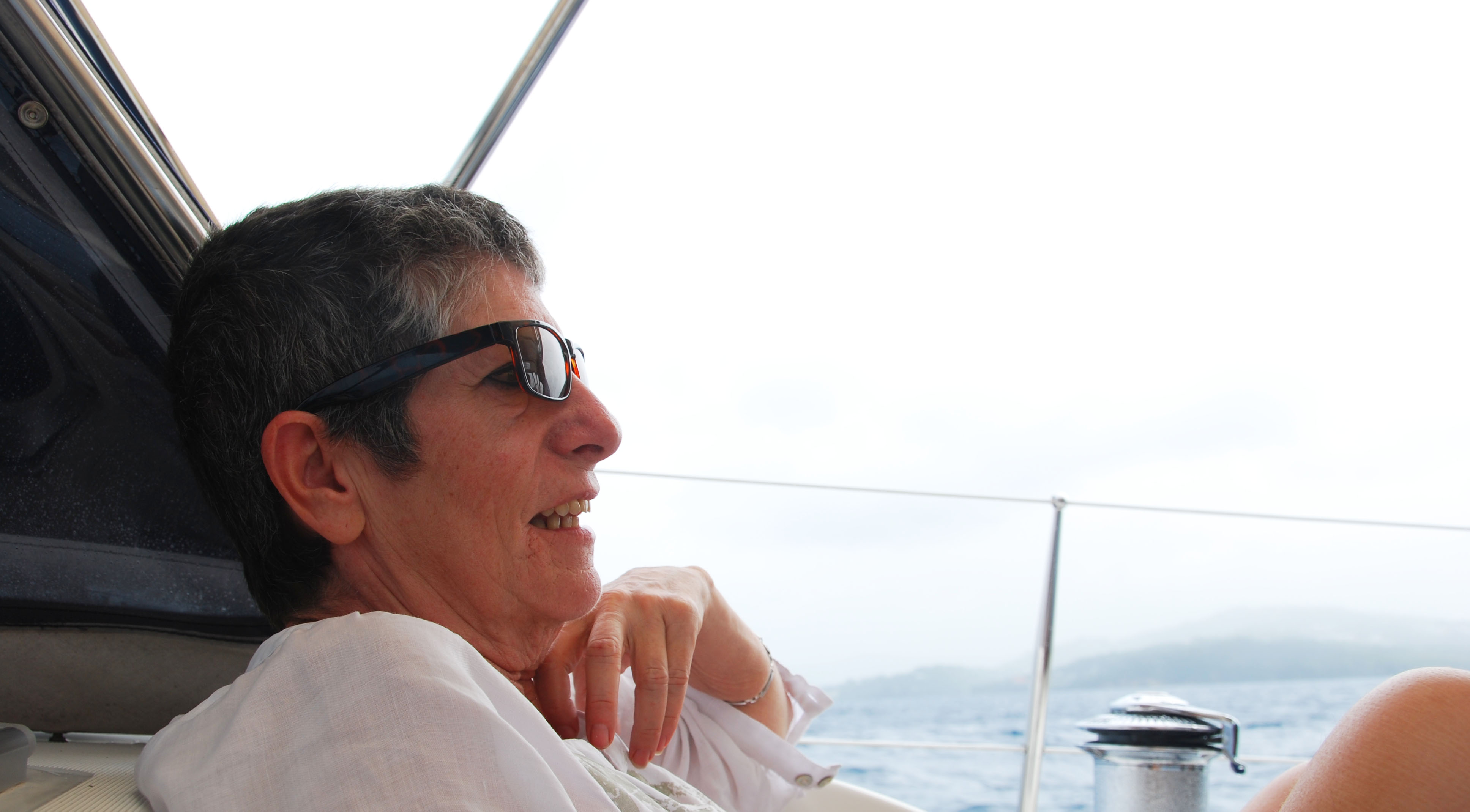 La dernière journée nous tentons une sortie pour faire de la voile pour la voile. Alain est radieux mais la mer est grosse, les vagues croisées, à peine si l’ont voit la côte à trois milles. L’autre Alain filme, il a pris beaucoup de footage d’ailleurs ces derniers jours. Danielle tient son chapeau. Au secours mes cheveux! Réjeanne est calme mais tous les trois ne se sentent pas super, super.