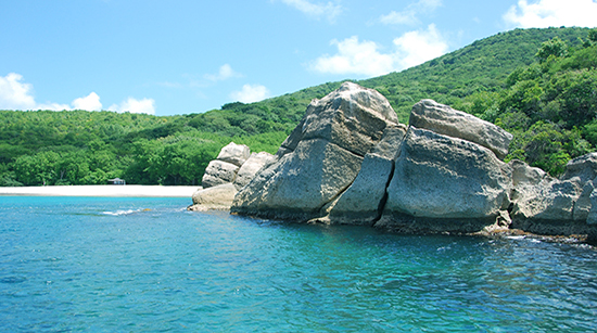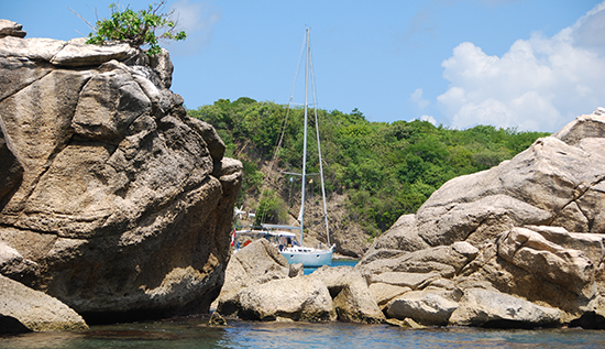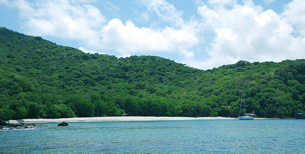 Eh oui! Il existe encore des mouillages idylliques ou l’on peut être seuls. Après deux mois séparés, le capitaine et moi avions besoin d’intimité. Nos retrouvailles gagnent en qualité. Nous disposons dans notre eden: d’une belle plage de sable blanc, d’un paysage de montagne verdoyant et vierge, de formations minérales spectaculaires, de plein de ciel avec nuages de coton et étoiles, de couchers de soleil sur la mer, de rayons verts, d’eau cristalline, de récifs et de poissons colorés, d’un banc de calmars sous la coque, d’oiseaux pêcheurs et même plus…