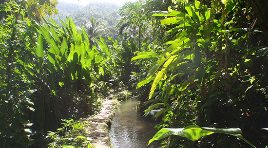 Cette construction extraordinaire pour l’époque, avait pour but de suppléer aux sources traditionnelles d’énergie utilisées jusque là. Elle acheminait l’eau de la rivière du Carbet vers la côte caraïbe afin d’y irriguer les cultures de canne à sucre. Long de 7km,  le canal comporte une pente régulière de 2%. Cette déclinaison, soigneusement calculée,  permet  un écoulement régulier et évite l’usure du fond du Canal.