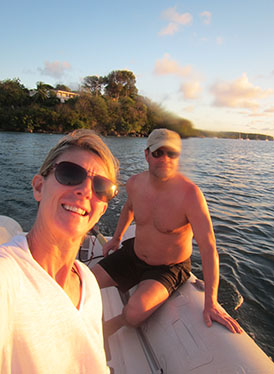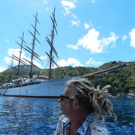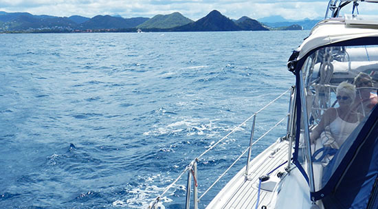 The hospitality we enjoyed was second to none. One instance comes fresh to mind every time I reflect. We thought we were in Canadian Tourist heaven when we were invited to lounge on the foredeck as we approached the Pitons in South St. Lucia. Peggy and I were basking in the beauty that is the world class coastline off of Soufrierre. To top the afternoon off, the hatch in front of was pressed open, and up came a delivery of two glasses of wine to help punctuate our pleasure.