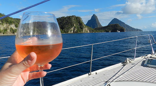 St. Lucia Pitons, pastèque et vin de Provence.