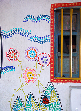 Wow plus,jamais vu petit village aussi coloré …incroyable..la joie pour une amoureuse des couleurs.Merci de partager cette beauté toute naturellement créer par des habitants heureux qui décorent ainsi leur petit patelin!Ah que j’aimerais y peindre aussi quelque zigzag colorés…des heures de plaisir!Hate de savoir où on pourras se rejoindre en janvier; là où ailleurs ou sand blas ou tobagoet ses petites îles ….