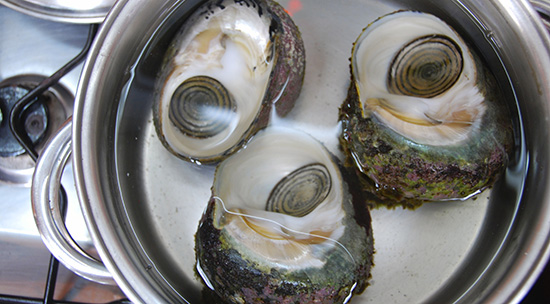 Plus facile à pêcher, nous nous sommes essayés aussi sur trois énormes escargots, tegula fasciata. Nous avions observé des français les récolter à Blanquilla…Des petits, 1 cm quand j’ai aperçu ces trois molosses de 10 cm collés à la coque d’une épave, je n’ai pu résisté. Bon, l’expérience n’a pas été des plus concluantes. Ce sont des gastéropodes. Ainsi, la plus grande partie de leur anatomie est un énorme tube gastrique. Dégue! La partie de la bête dont on peut se délecter est au final plutôt petite. Luc a tenu à y goûter, puis on a tous essayé. Çà goûte le bourgeau de chez nous en plus dur…mais peut-être ne savions pas bien comment le faire cuire. Nous nous sommes donc remis aussi aux lambis, ou conches si vous préférez. Une chair bien plus savoureuse…