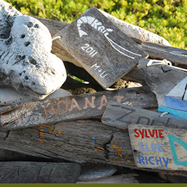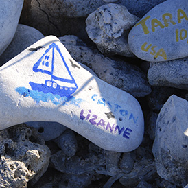 Tout comme dans le parc marin des Exumas au Bahamas, on retrouve ici un lieu où les navigateurs laissent la trace de leur passage. Avec Aline et Luc, nous nous sommes fait un plaisir de laisser notre marque. Il est agréable, et parfois touchant, de voir les témoignages des certains bateaux amis ou encore connus sur le réseau du capitaine.