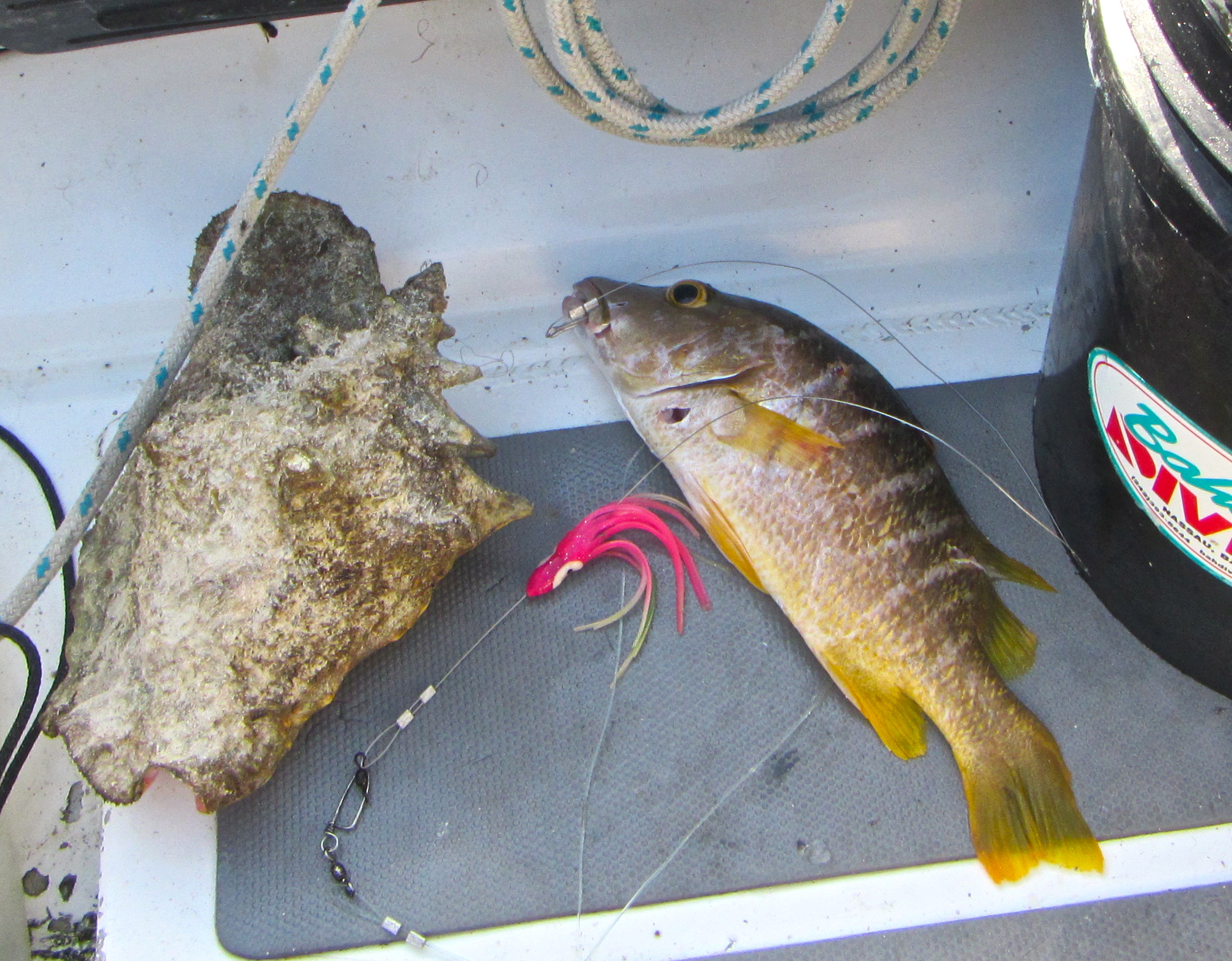 Bonne prise, un thazard maquereau. Dommage, il a été dévoré d’au moins la moitié avant qu’on le ramène à bord.
