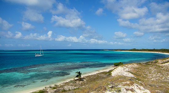 Évidemment, c’est une blague. Au mouillage aux Aves de Sotavento, nous sommes deux bateaux. Nos voisins en provenance de Bonaire sont très athlétiques et acrobatiques.