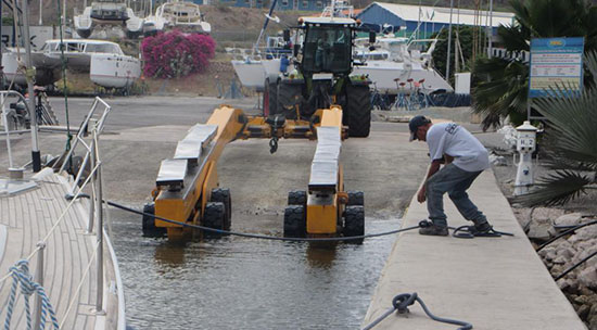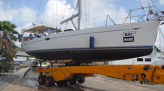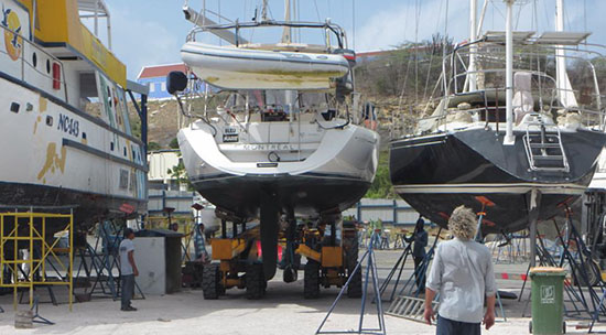Nous avons été habitués au “Trailer Lift” par le passé. Ici chez Curacao Marine, ils ont une drôle de bébite: un “Roodberg 60 ton trailer”. Les opérateurs de ces machines sont toujours très impressionnants.